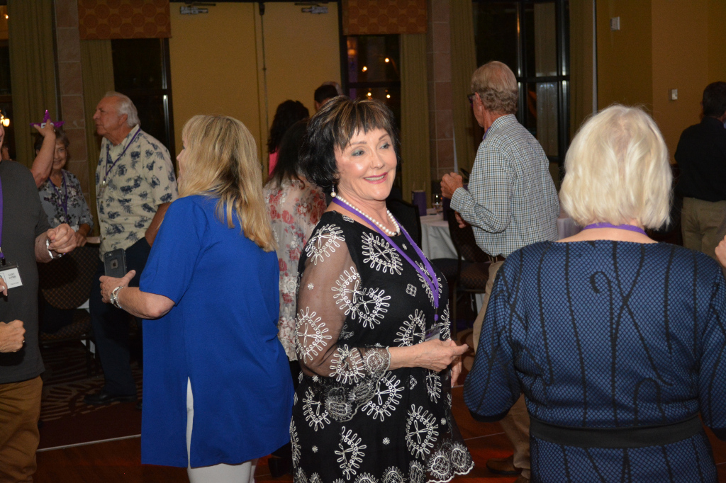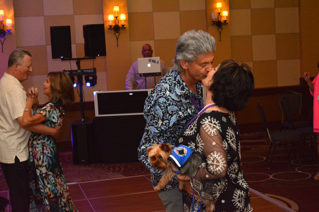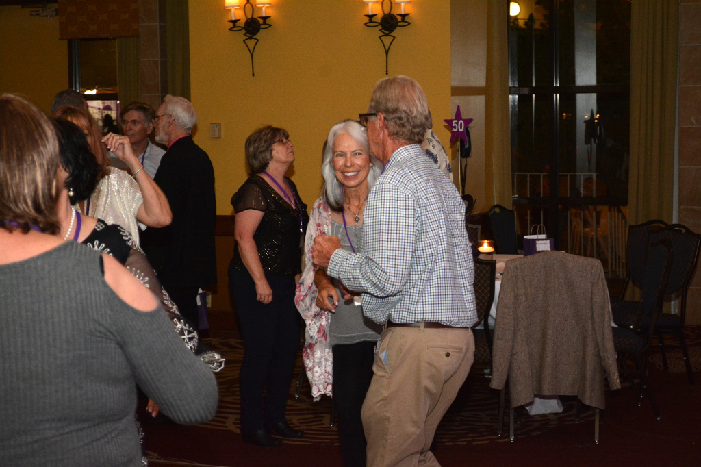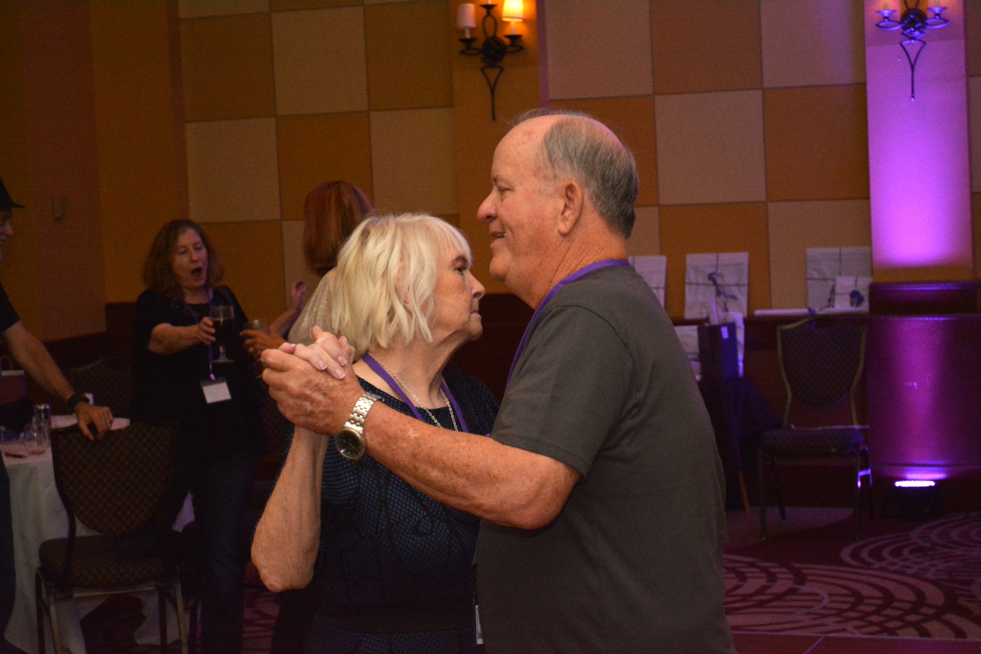 dress. Debbie Dorius and Bob Ross are using the dance floor as a