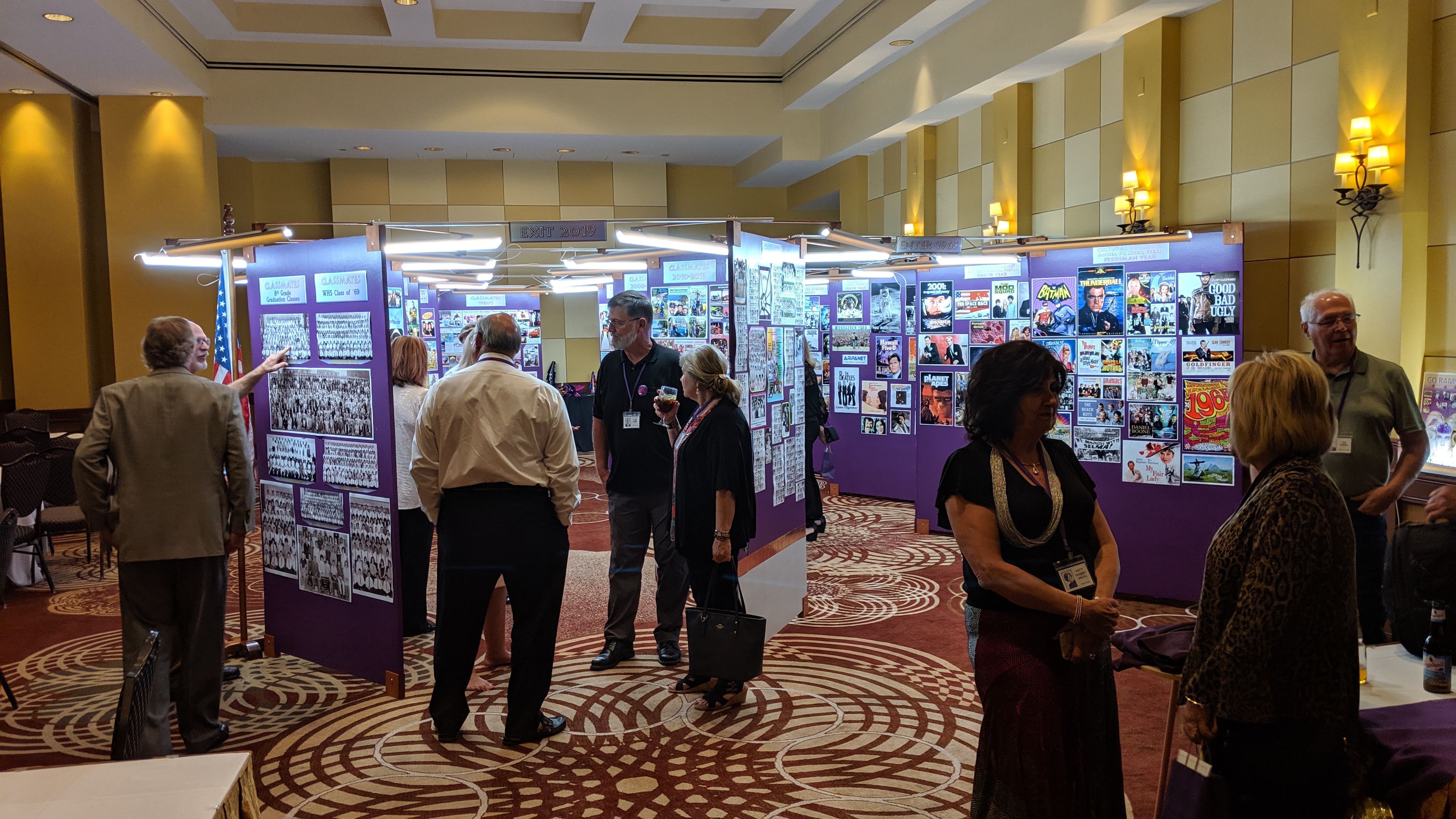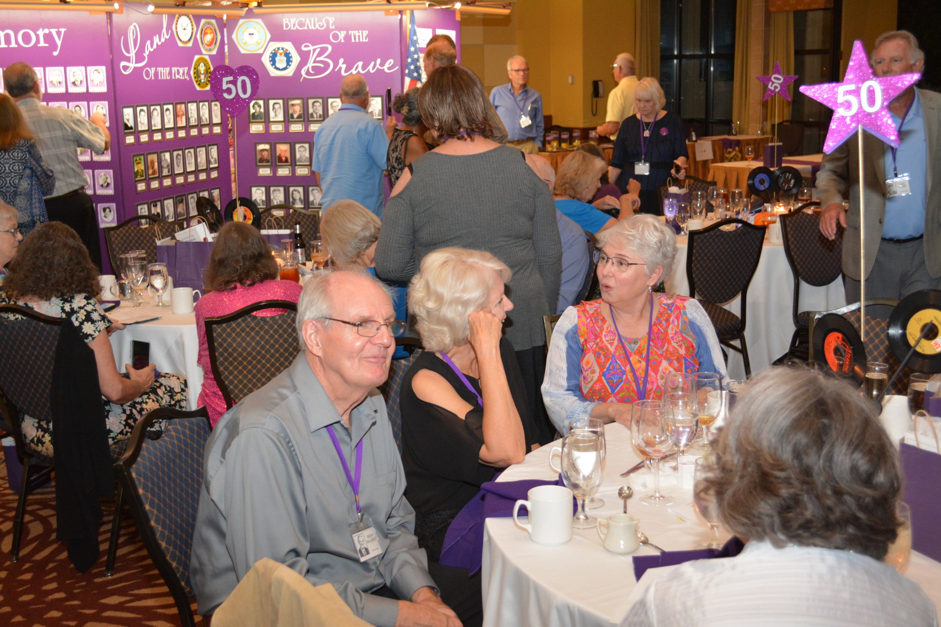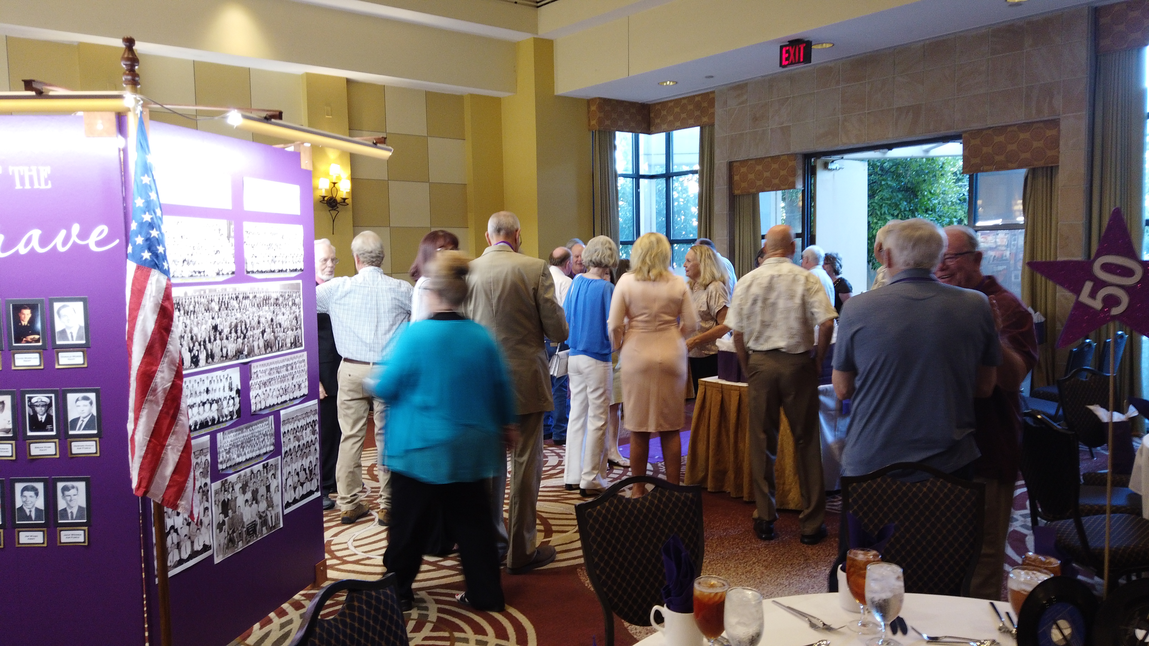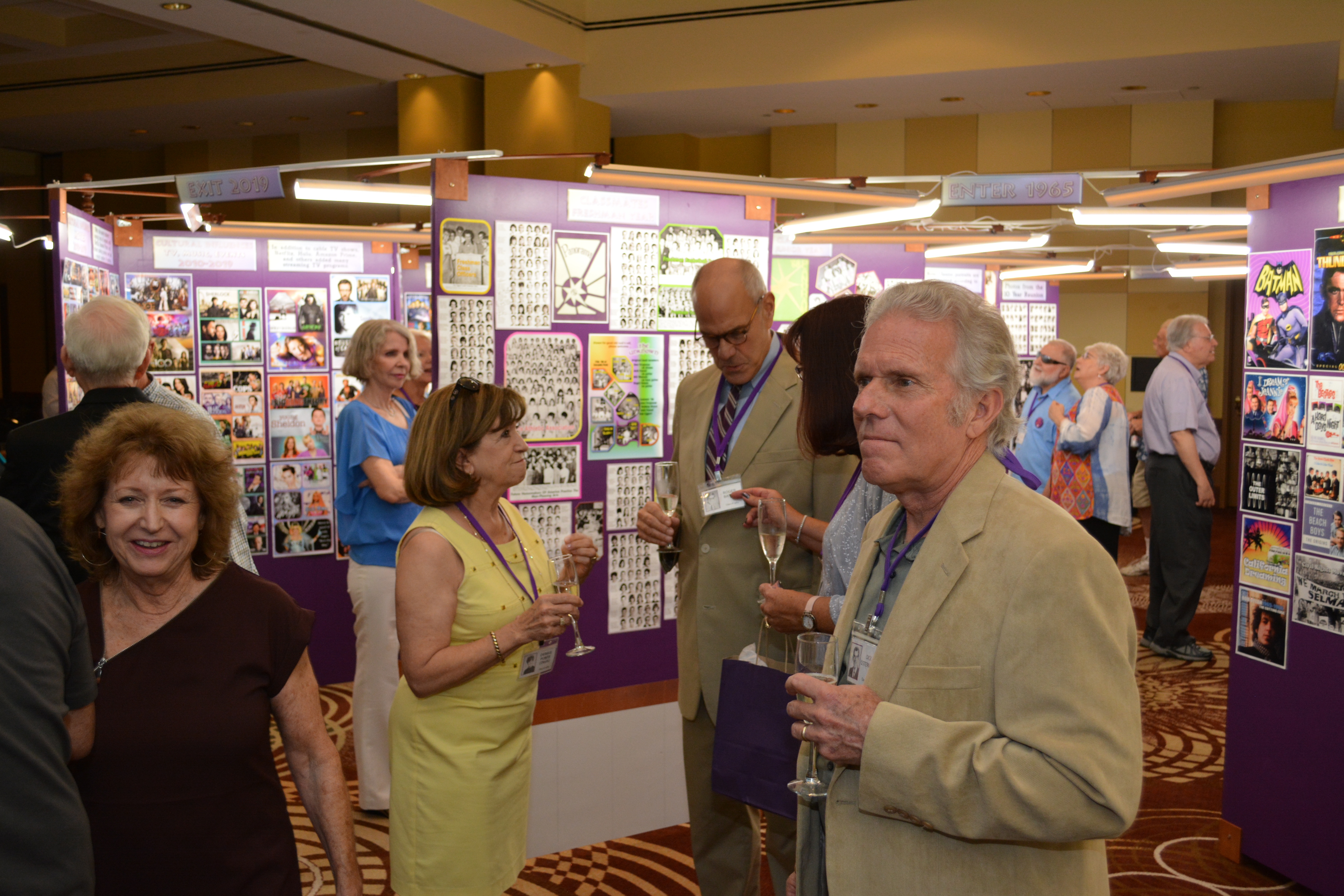reunion. Over my left shoulder is a wall showing classmate photos from