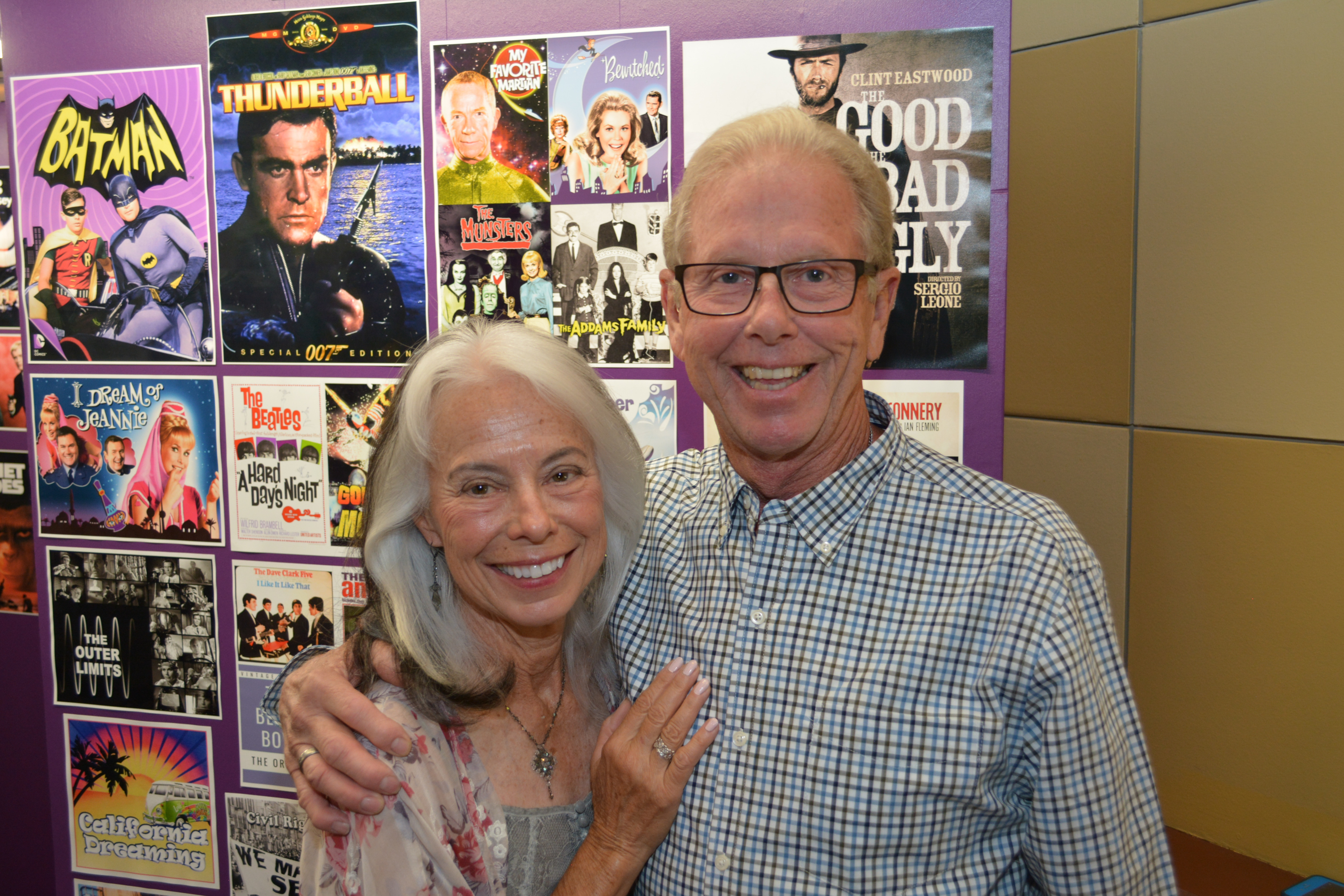 Arlo and Trudi pose in front of the 1965 cultural wall.