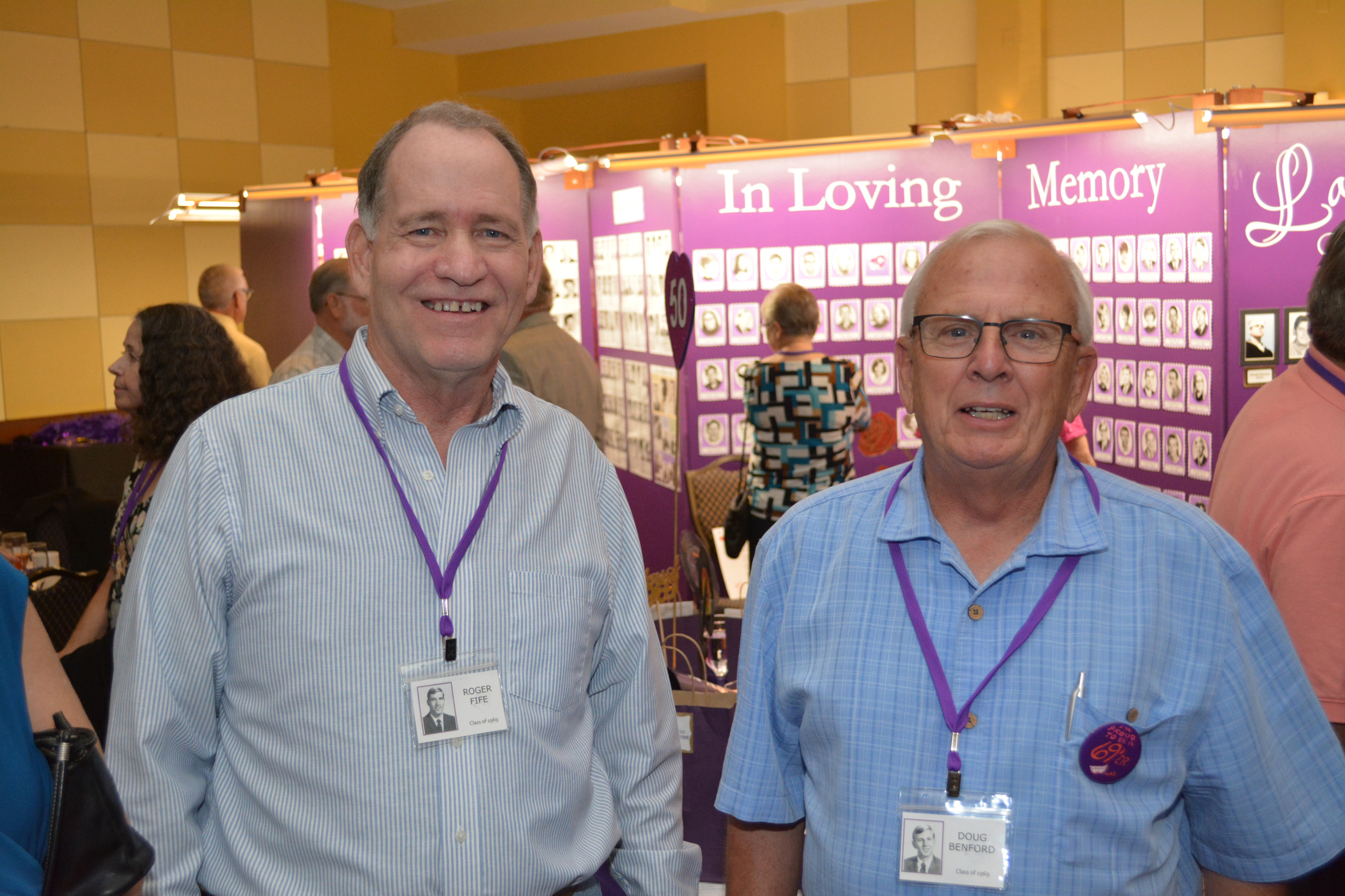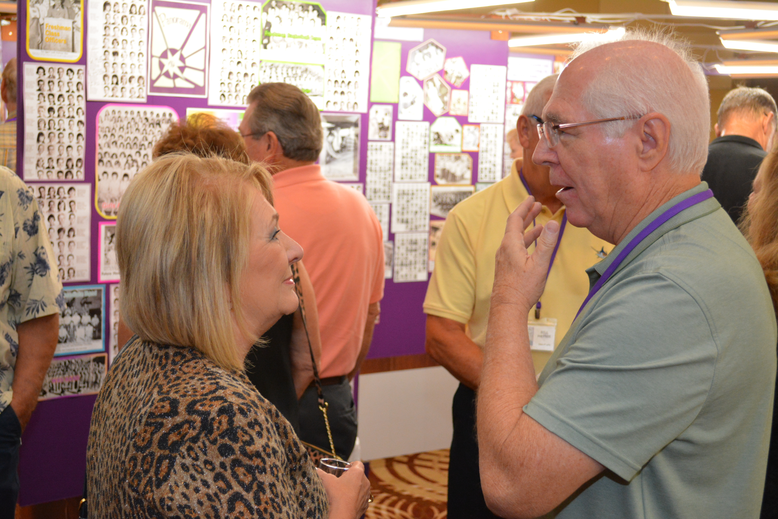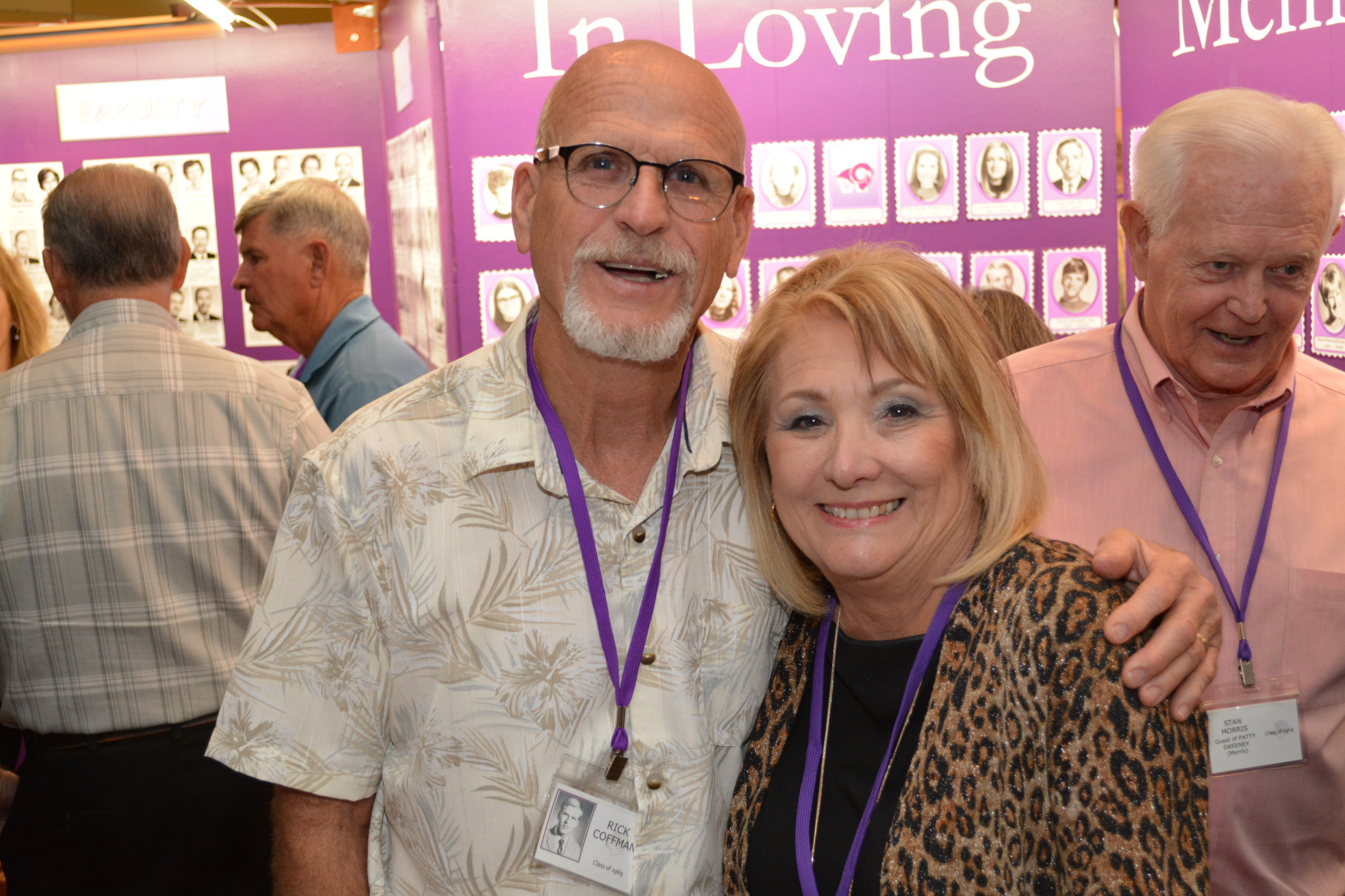 Photos from the 40 year reunion are behind Jerry Robertson and wife. |