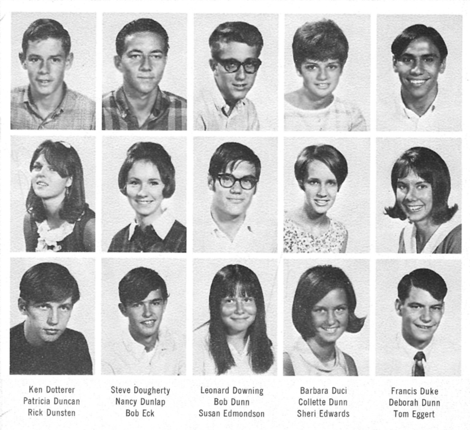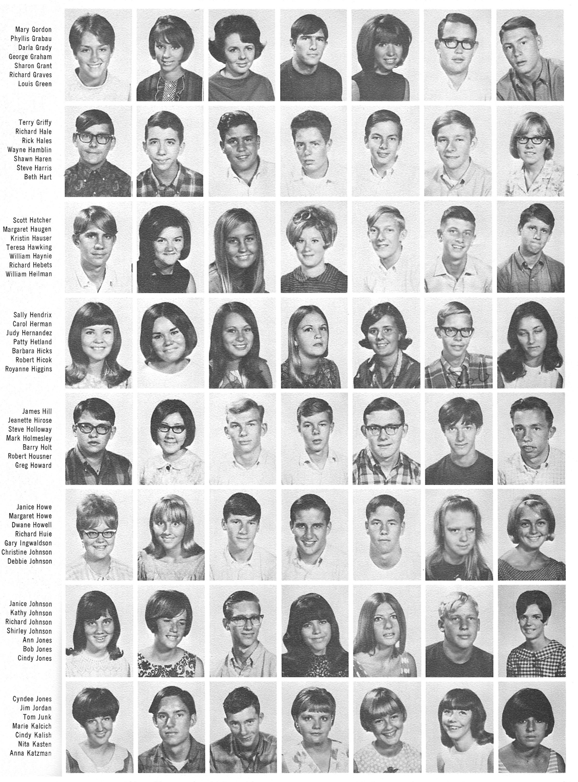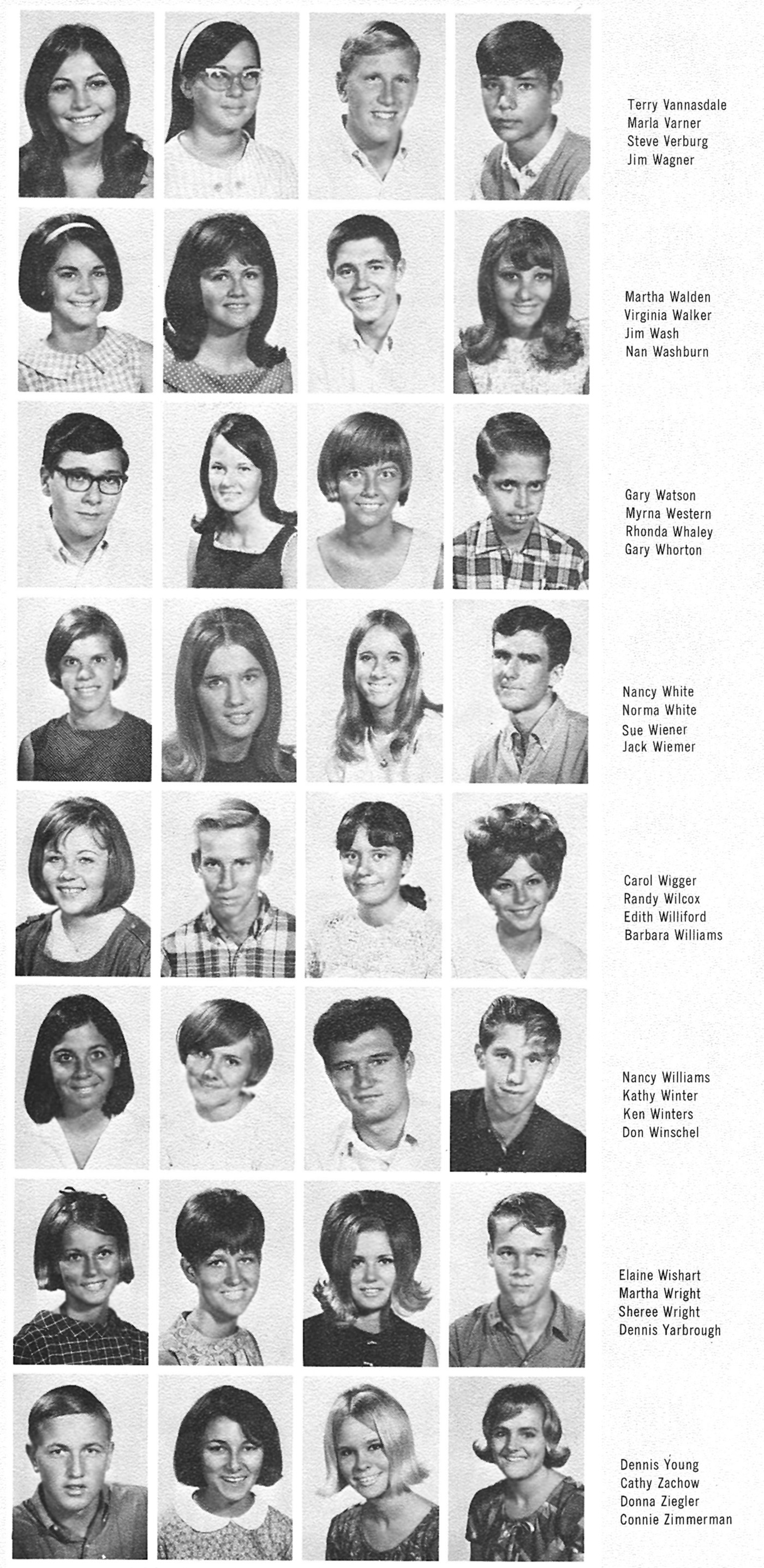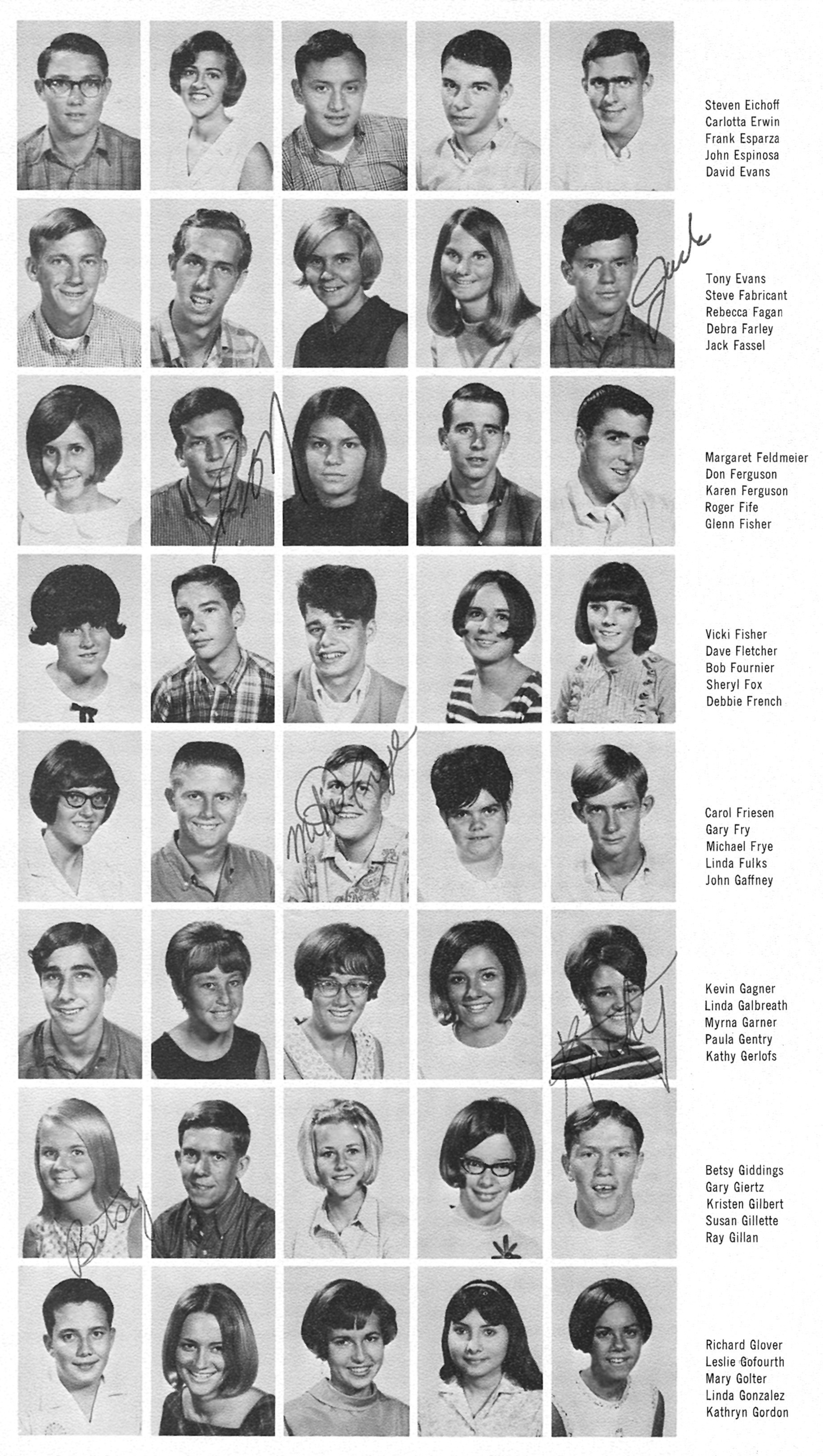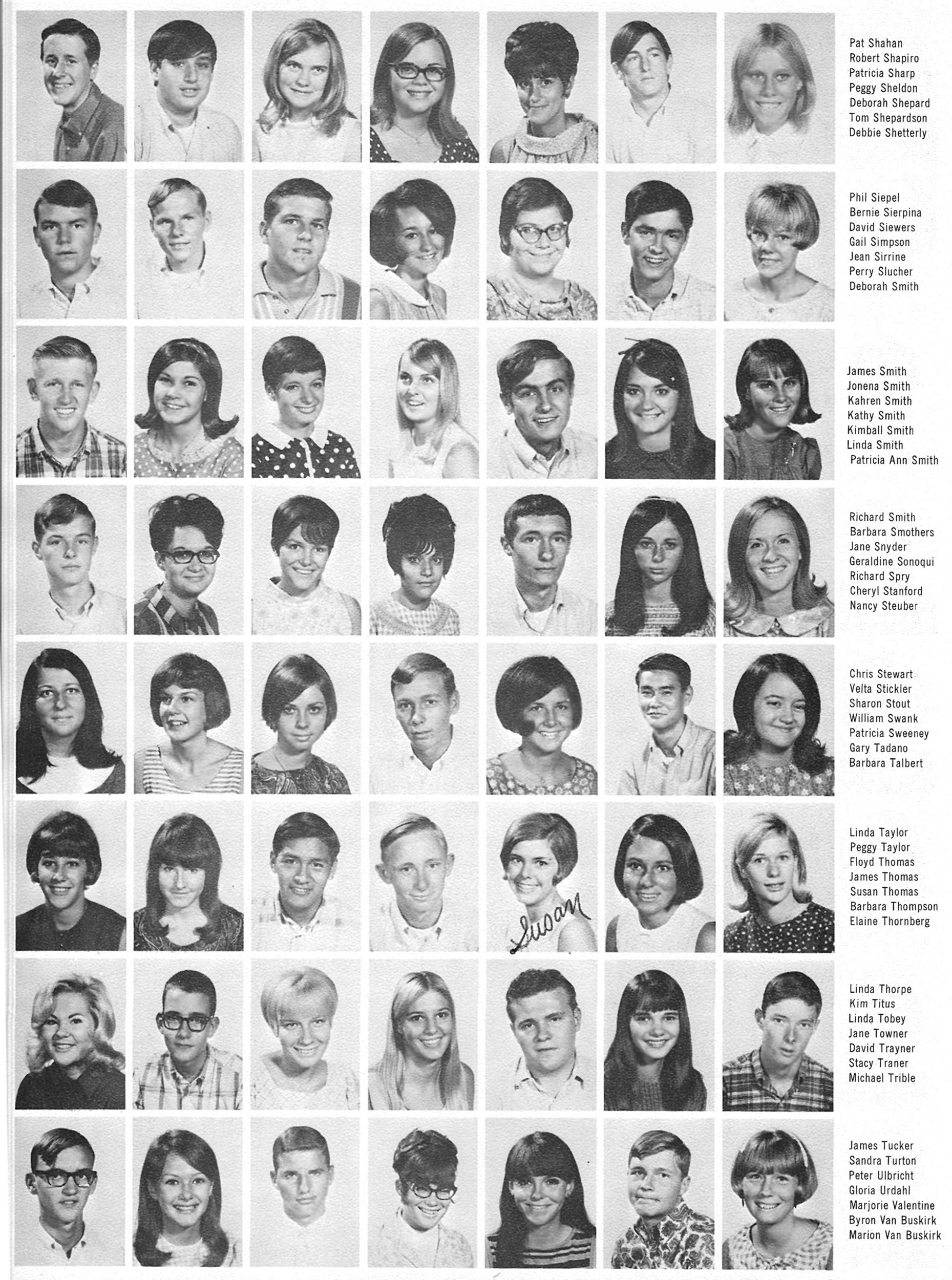 | The below layout approximates the original junior year photo wall. Click on the photos to see the high resolution version of the photo. You may then see a magnifying glass "+" icon meaning when you click on the photo, it will zoom to an enlarged version. Clicking again, returns it to the smaller size. When viewing the larger size, you can roll the mouse wheel to scroll up and down. On touch-sensitive screens, you can use the two finger pinch to enlarge and reduce the image. Download the photo by clicking with the right mouse button to see a pop-up menu, then choosing "Save Picture as..." or "Save Image as..." or something similar to that. On a Mac without a right mouse button, press and hold down the control (CTRL) key while clicking mouse to see the pop-up menu. To return to this page, click the go back arrow ← at the top (left) of the browser window. Also pressing the CTRL key with + or - keys will enlarge or reduce the overall screen size. | |||||