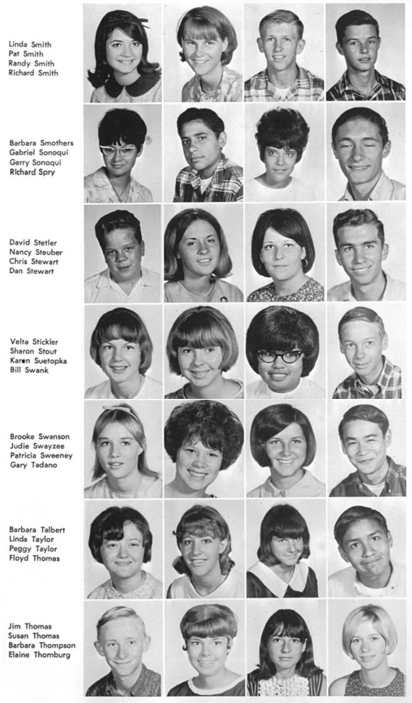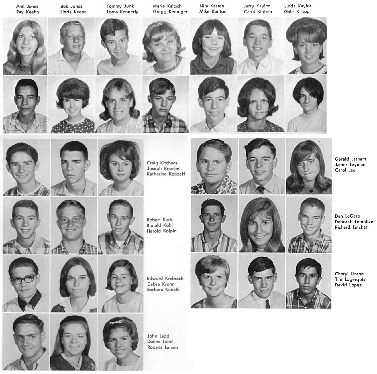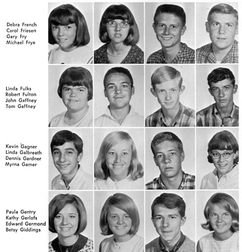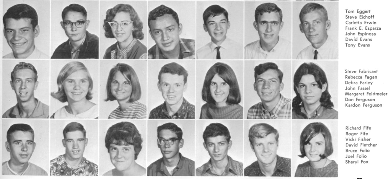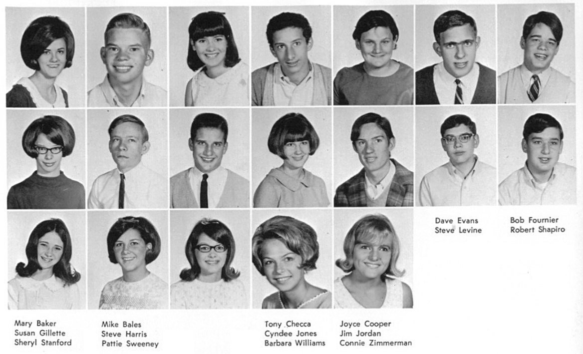 | The below layout of images approximates what was on the original sophomore photo wall. Click on the below photos to see the high resolution version of the photo. You may see a magnifying glass "+" icon meaning when you click on the photo, it will zoom to an enlarged version. Clicking again, returns it to the smaller size. When viewing the larger size, you can roll the mouse wheel to scroll up and down. On touch-sensitive screens, you can use the two finger pinch to enlarge and reduce the image. Download the photo by clicking with the right mouse button to see a pop-up menu, then choosing "Save Picture as..." or "Save Image as..." or something similar to that. On a Mac without a right mouse button, press and hold down the control (CTRL) key while clicking mouse to see the pop-up menu. To return to this page, click the go back arrow ← at the top (left) of the browser window. Also pressing the CTRL key with + or - keys will enlarge or reduce the overall screen size. | ||||