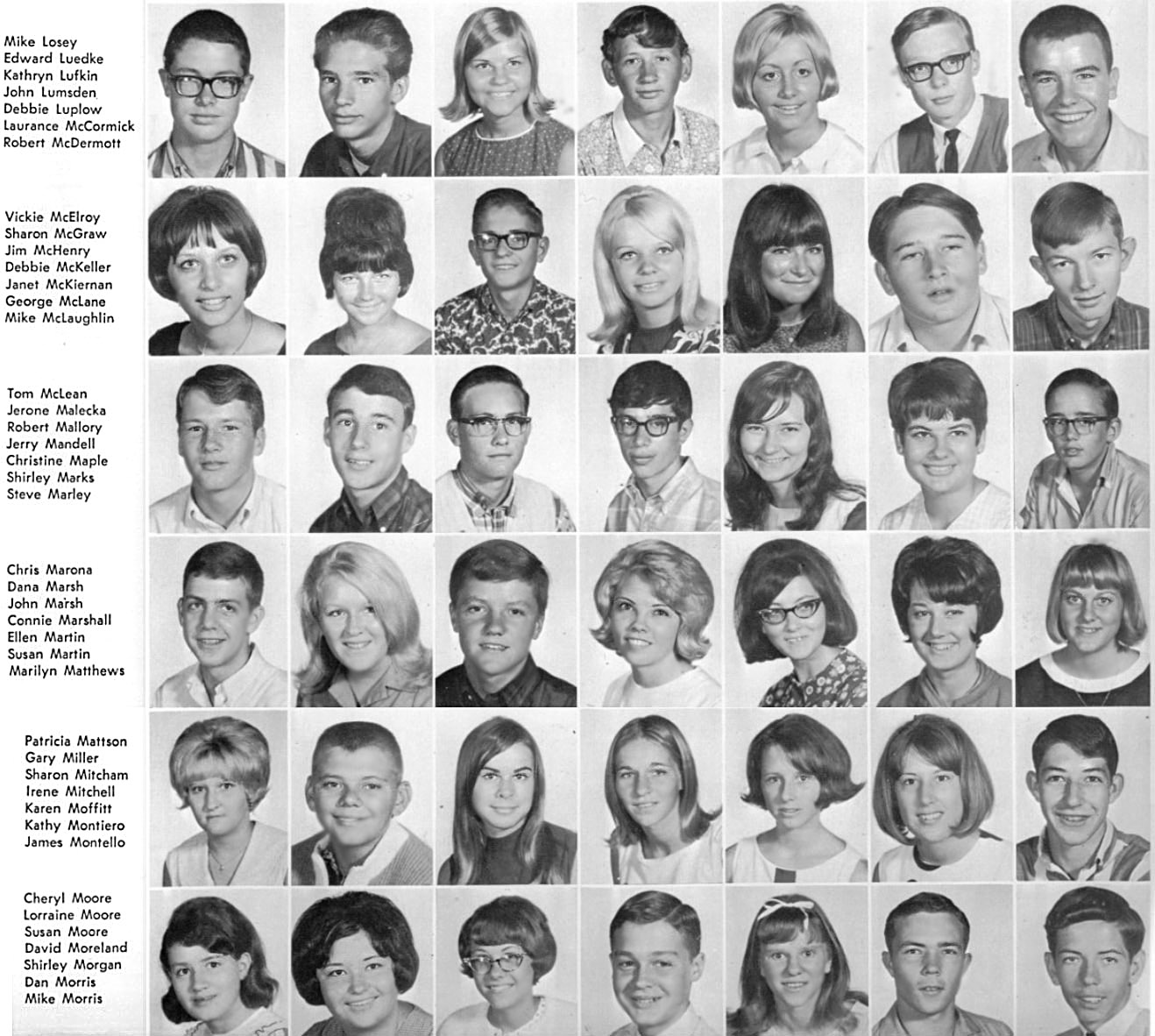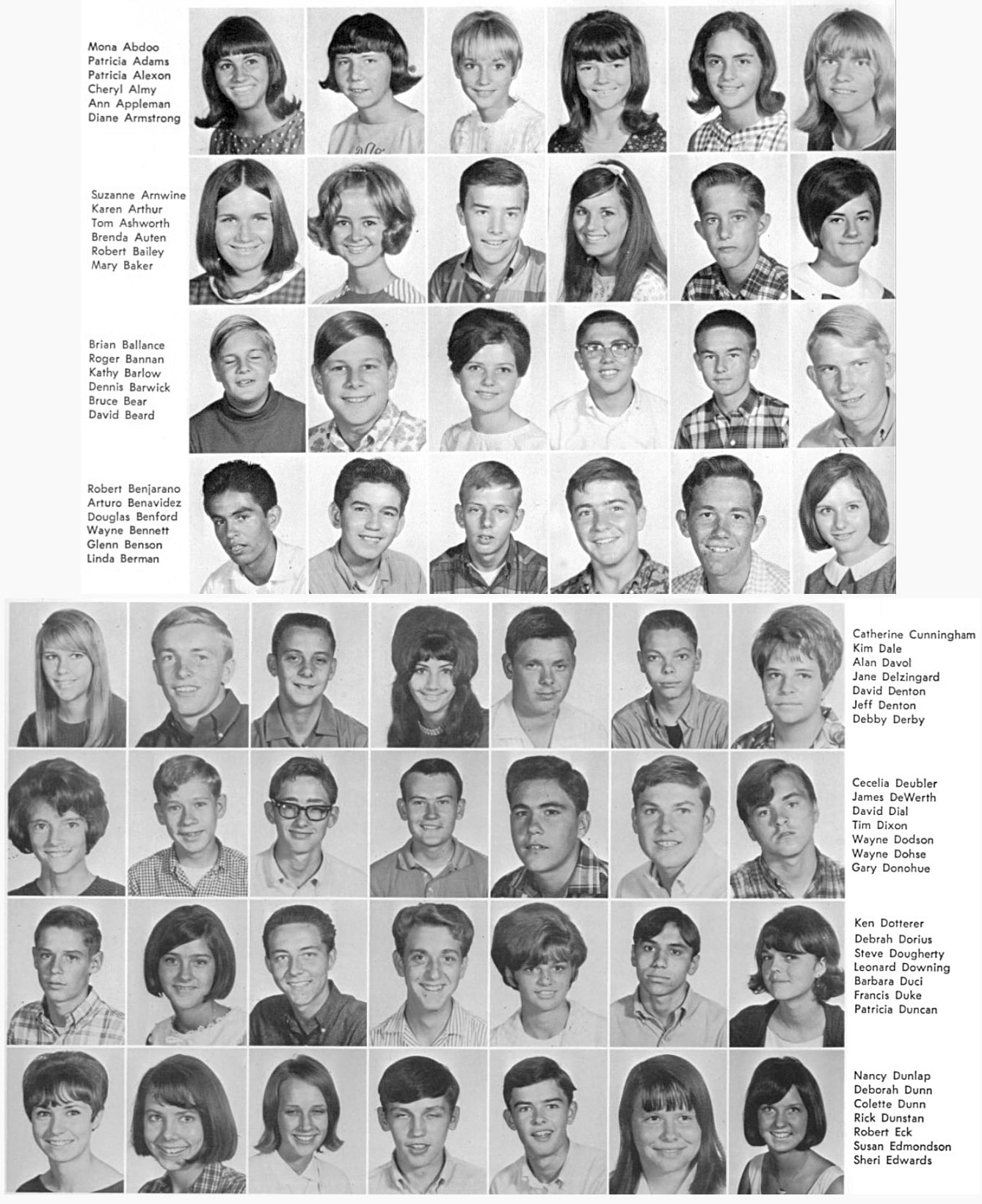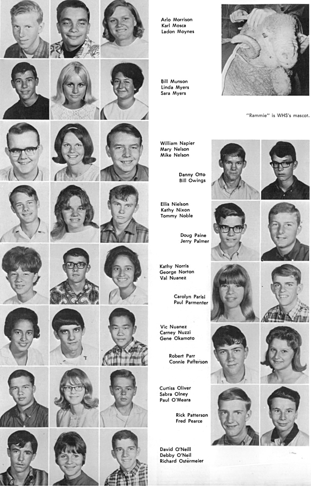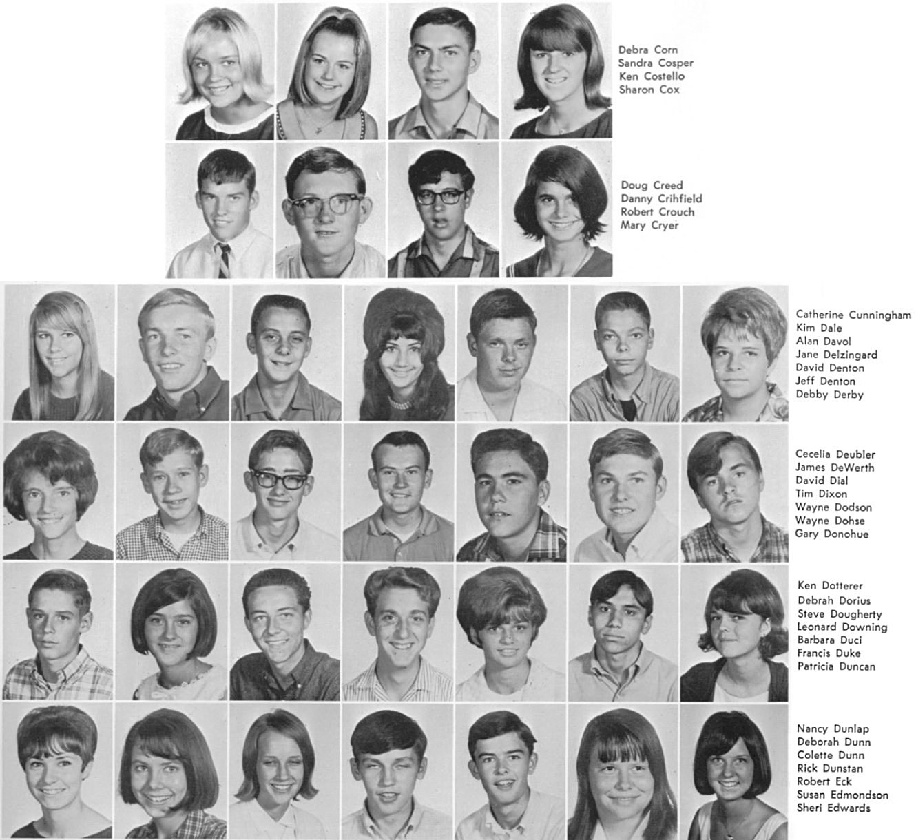 | The below layout of images approximates what was on the original sophomore photo wall. Click on the below photos to see the high resolution version of the photo. You may see a magnifying glass "+" icon meaning when you click on the photo, it will zoom to an enlarged version. Clicking again, returns it to the smaller size. When viewing the larger size, you can roll the mouse wheel to scroll up and down. On touch-sensitive screens, you can use the two finger pinch to enlarge and reduce the image. Download the photo by clicking with the right mouse button to see a pop-up menu, then choosing "Save Picture as..." or "Save Image as..." or something similar to that. On a Mac without a right mouse button, press and hold down the control (CTRL) key while clicking mouse to see the pop-up menu. To return to this page, click the go back arrow ← at the top (left) of the browser window. Also pressing the CTRL key with + or - keys will enlarge or reduce the overall screen size. | ||||