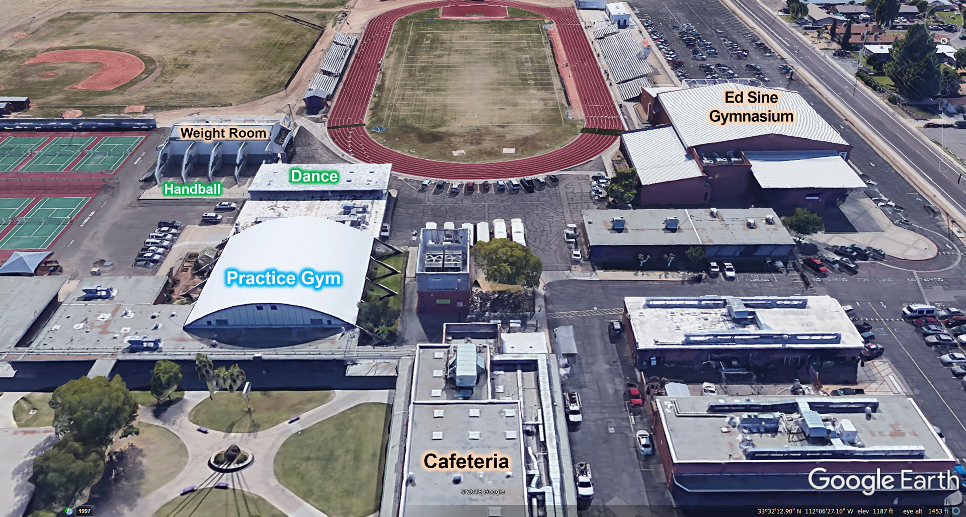 track is visible, too. The Ed Sine gymnasium was built after we were in high school. We used the "old gymnasium" which is now called the "Practice Gym" |