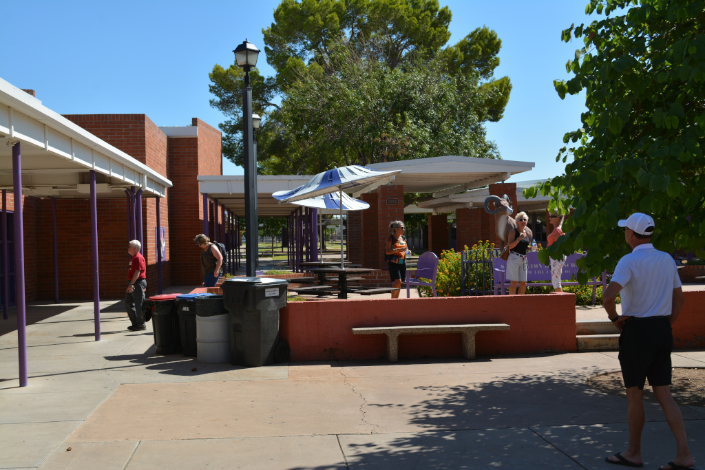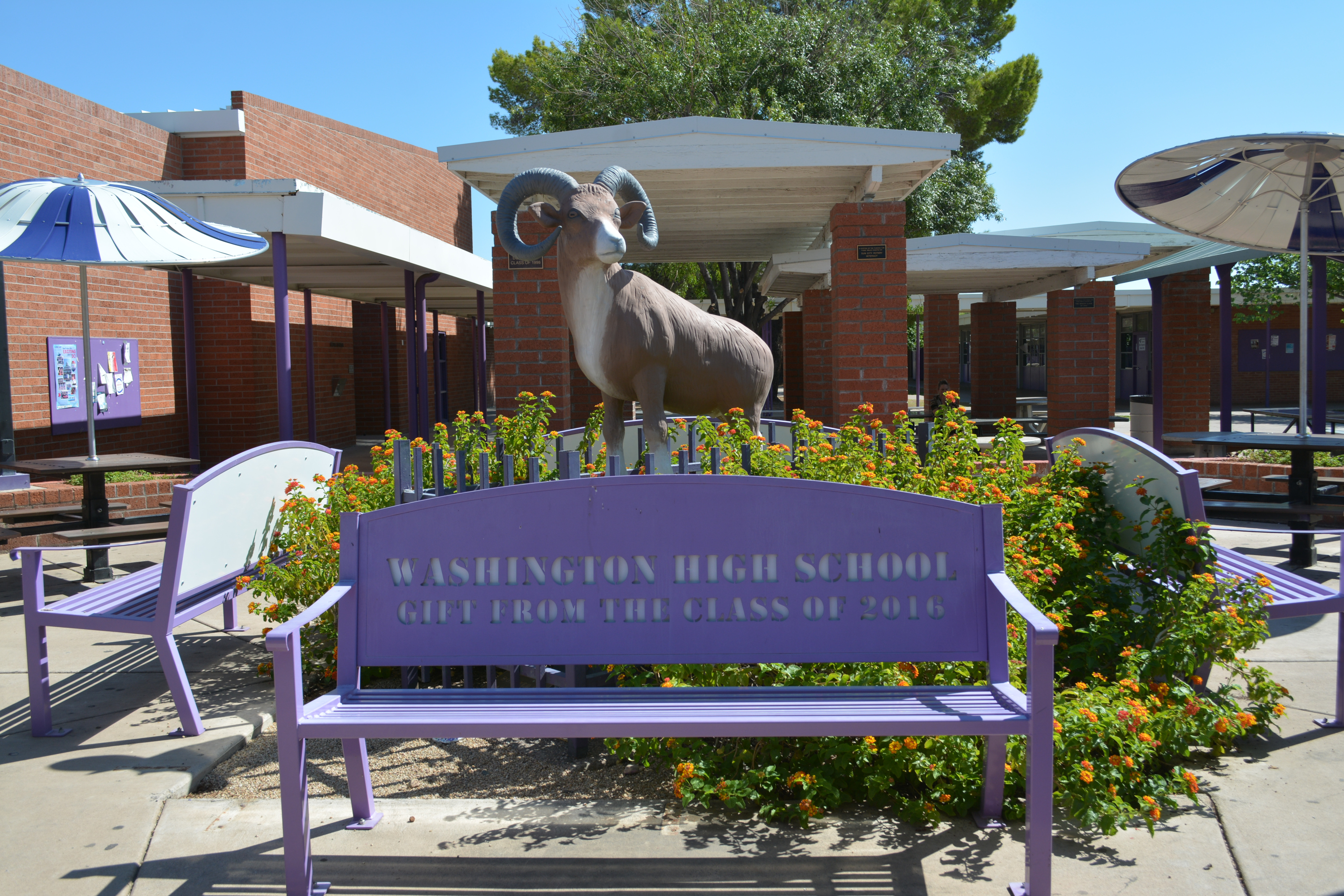 That is nice gift from the Class of 2016. The surrounding tables with umbrellas provide more areas to sit. |