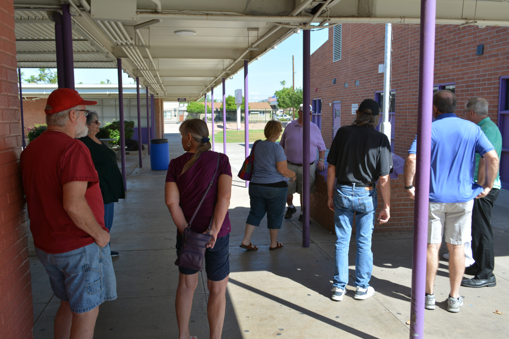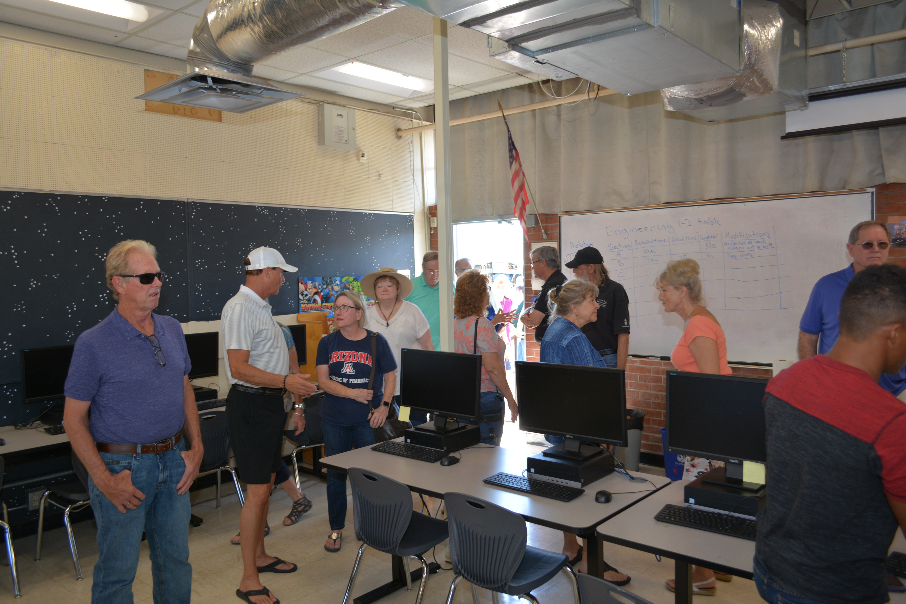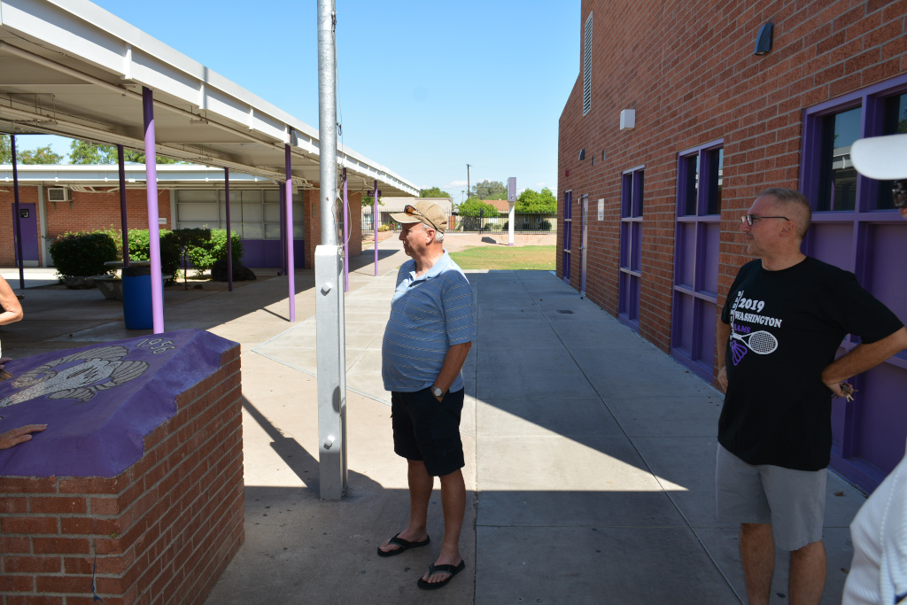 Assistant Principal, Todd Nelson, is giving the tour. He's on the right with the black Washington tennis (or badminton?) T-shirt.