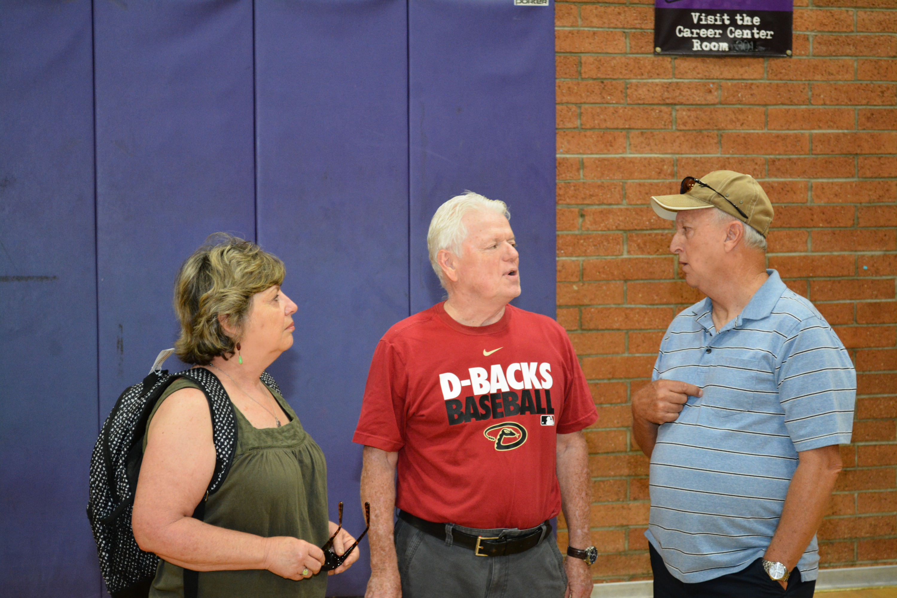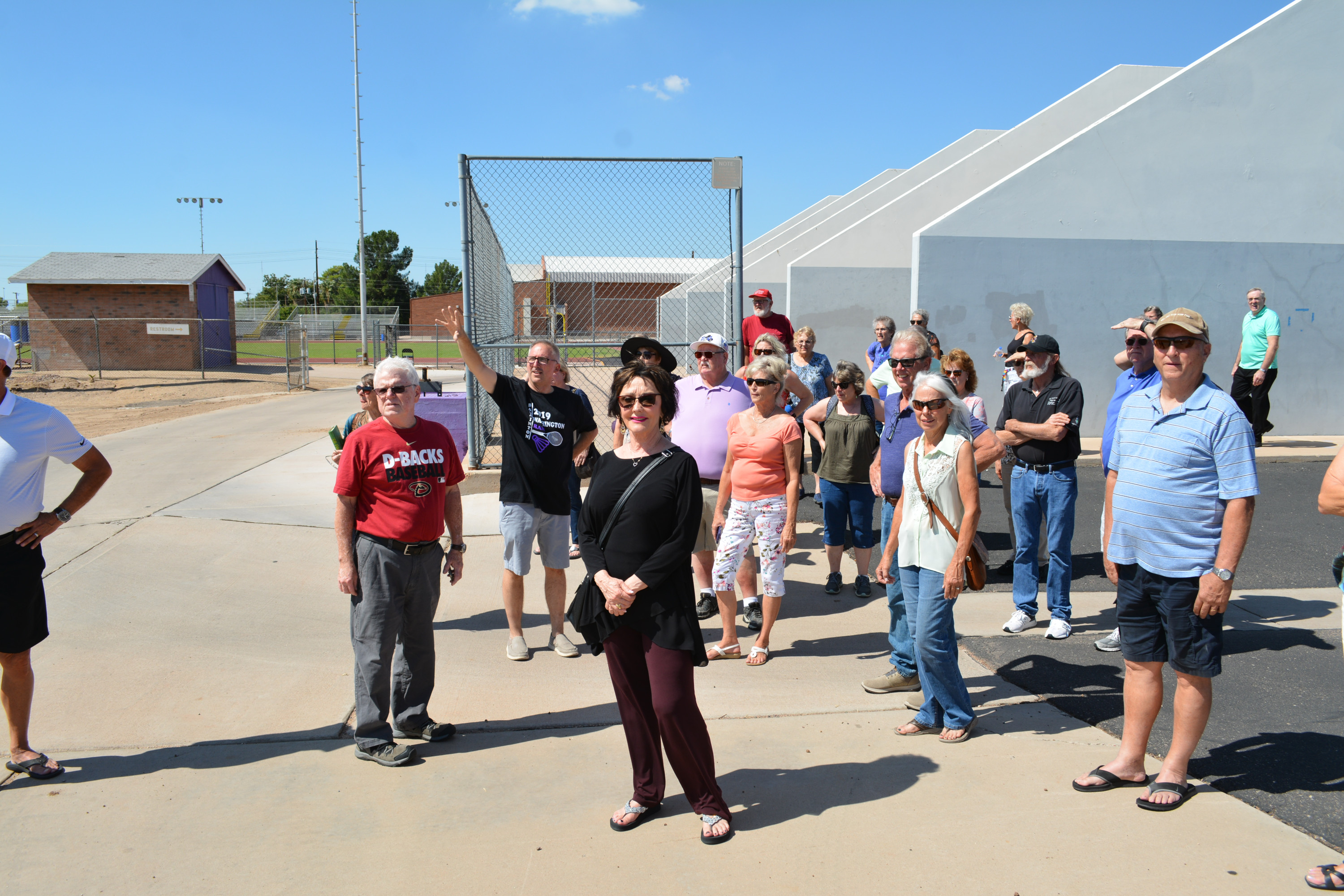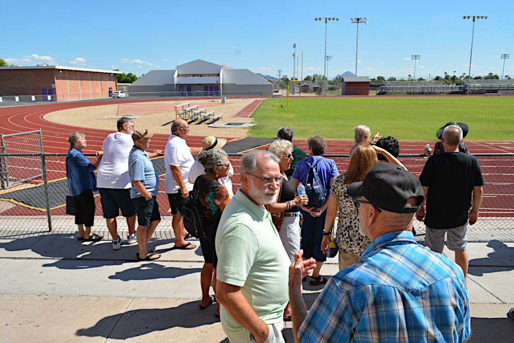 Trudi moved closer to the principal to get more of a straight-on photo. Now everyone's face is visible. Lot of smiles so it appears that everyone had a good time on the tour of their old high school. It's now 12:30pm, which leaves plenty of time to get back to the Sheraton and get ready for the 50 Year Reunion.
